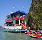 07:00 - 08:00 Pick up the hotel or meeting point 10:30 Arrive at the pier, where our journey to Phang Nga Bay and James Bond Island will start from 11:20 Visit the James Bond Island, where the movie starring Roger Moore " Man with Golden Gun" was shot in 1974. 12:00 Buffet lunch on the boat while the boat will pass the surrealistic limestone mountains, one of the unforgettable natural wonders in Asia, with its huge and all covered in green of trees and plant stocks towering vertically out of sea water. 13:00 Canoeing at the Hong Island which is one of the famous canoe sites in Phang Nga. Hong in Thai language means room and here at Koh Hong big and small limestone mountains which give you a feeling of being surrounded in a large hall with two doors. 14:00 Swimming and relaxing. 15:30 Arrive at long Khien Pier 15:45 Visit the Samet Nang She view point, the best place to see the breathtaking view of Phang Nga Bay and where you can take as many pictures of you. Out friendly and caring staff will help you take the best shots. 17:00 Arrive back to Pier at Phuket and then transfer back to your hotel
